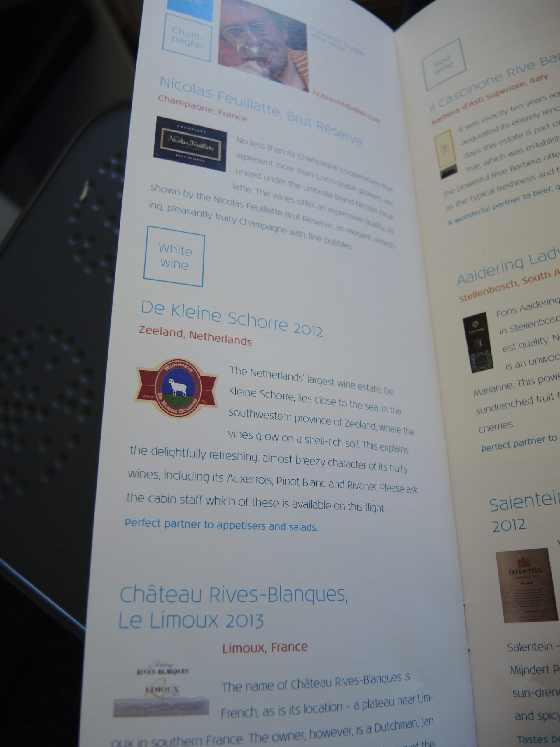 KLM Business Class wine menu 1